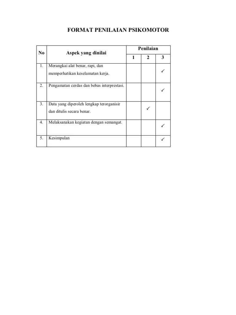 Format penilaian aspek kognitif, afektif, dan psikomotor.